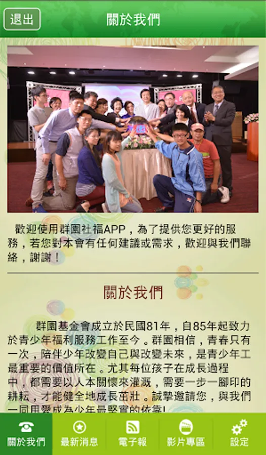 • 關於我們:完整的提供群園社福基金會的聯絡方式與簡介。