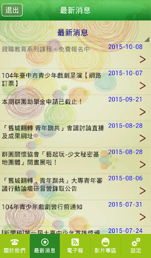 • 最新消息:與網站同步公告各項不定期舉辦的活動與公告內容,分享群園輔導的成果訊息,掌握群園的最新消息資訊。