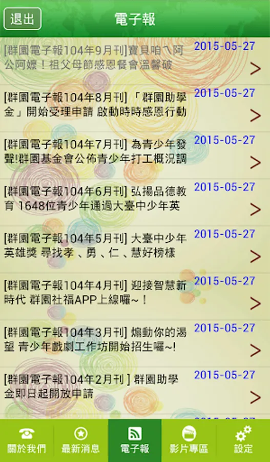 • 電子報:提供每月的月刊以及輔導內容的專題報導外,並能及時線上報名相關的活動內容。
