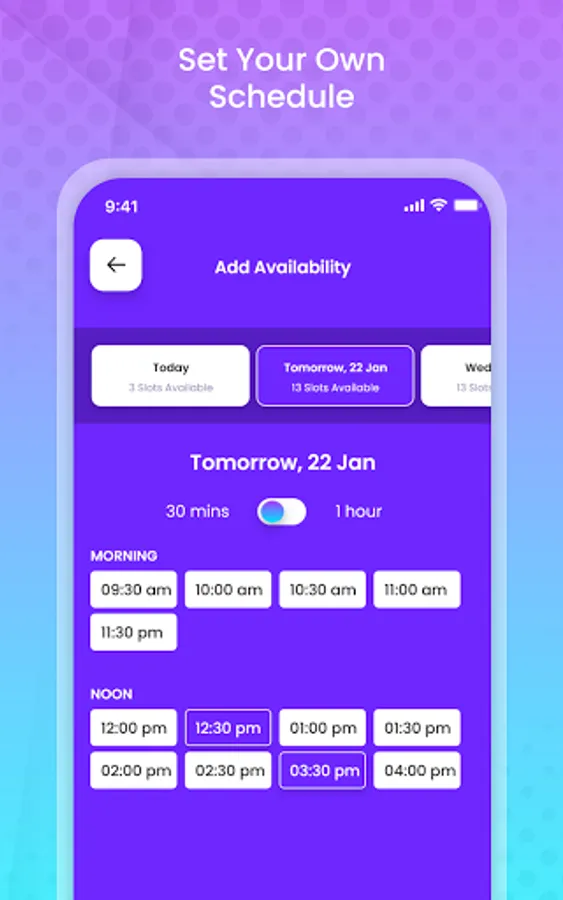 ● In-app scheduling and availability calendar