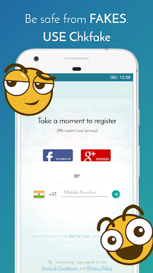 We very much value and protect your privacy. Please read our terms and conditions (https://chkfake.com/terms-and-condition/) and accept them before using the app.