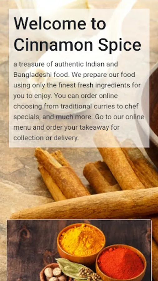 Cinnamon Spice is a treasure of authentic Indian and Bangladeshi food. We prepare our food using only the finest fresh ingredients for you to enjoy.