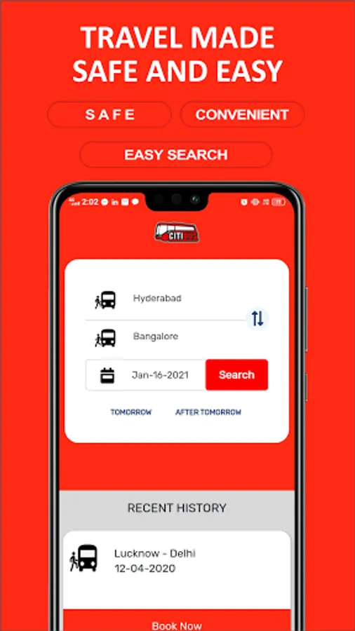 Booking Bus is quick and easy with Citibus app. Just enter your departure and destination along with date and search all the busses available on the route. Click on the bus of your type check the seat availability, choose your seat and enter your details and make payment. Now you are all done with your seat booking.