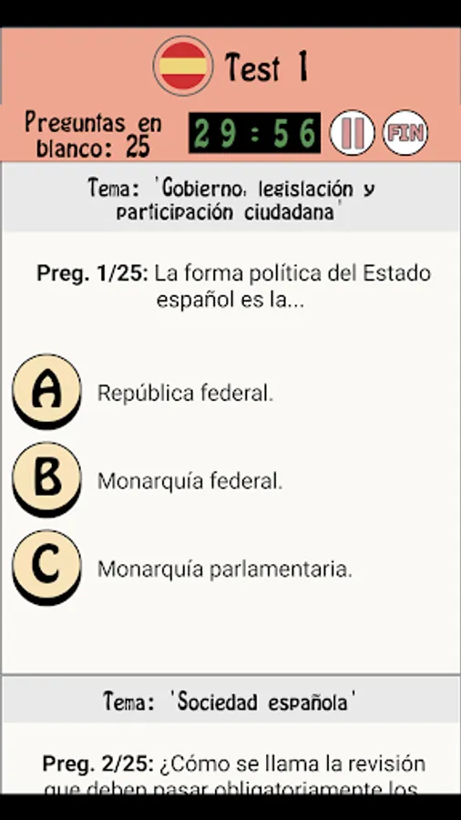Practice with our application at no cost and pass the Spanish Nationality exam.