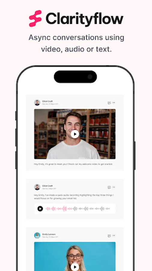 Introducing the Clarityflow Android app - your companion for seamless and productive asynchronous communication. With the power of Clarityflow, you and your clients can effortlessly exchange video, audio, or text messages, no matter where you are. Our intuitive threaded conversation view ensures every interaction is neatly organized, enabling you to trace your communication history with ease.