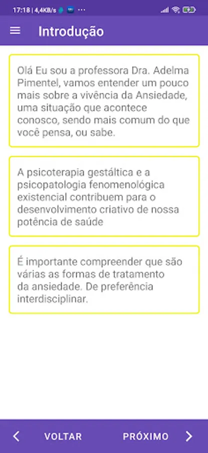 Clininica Gestaltica da Ansiedade presents Dr Adelma Pimentel's research on anxiety, the content is organized as follows: