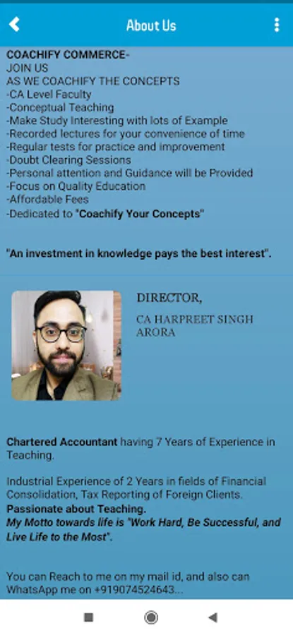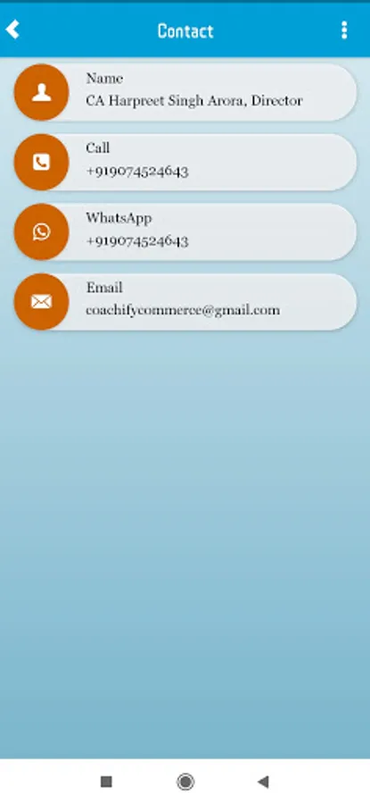 - Chat is option from which you can directly send WhatsApp message to "Director of Coachify Commerce" to ask doubts or to get any advice