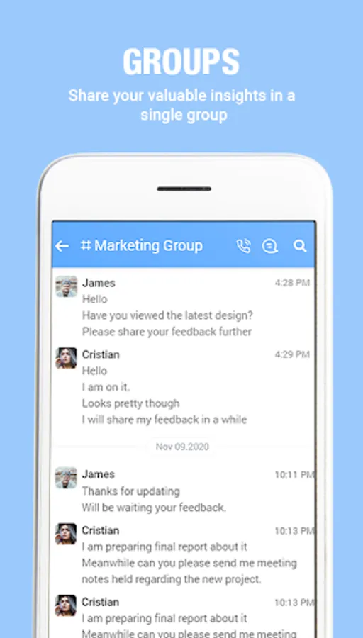 - Groups - Forget confusing email threads. Create separate groups for each project or team and start posting files, photos, etc