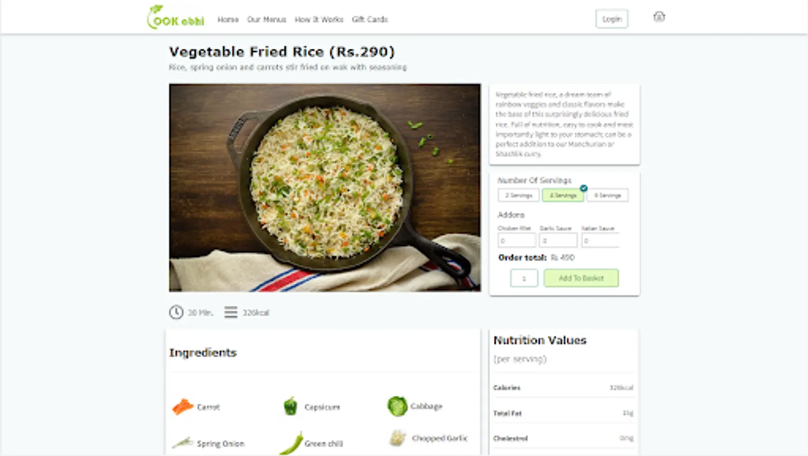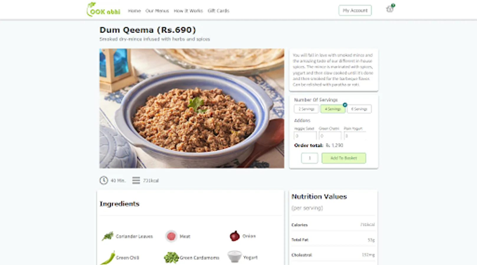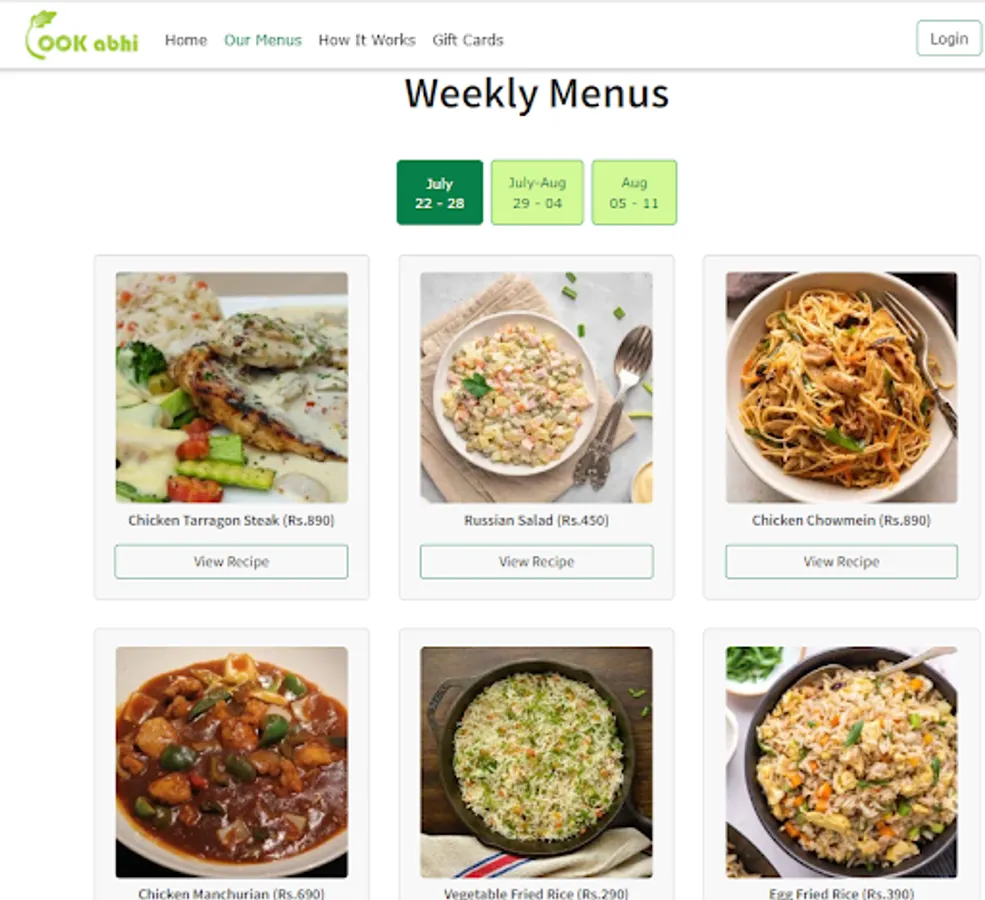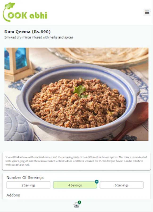 We provide you all the ingredients, clean and fresh, packed in a bag to cook delicious and hygienic food in 6-simple steps. Select recipes of your choice from our weekly menu page and place order. You will get all the ingredients of selected recipes including meat, veggies, sauces, masala etc. along with a recipe-card. Each recipe consists of 6-simple cooking steps. Cook the provided ingredients following these steps to serve your family, yummy and healthy food cooked by your own hands because doctors say: 'Health is guaranteed only when you cook it at home' :)