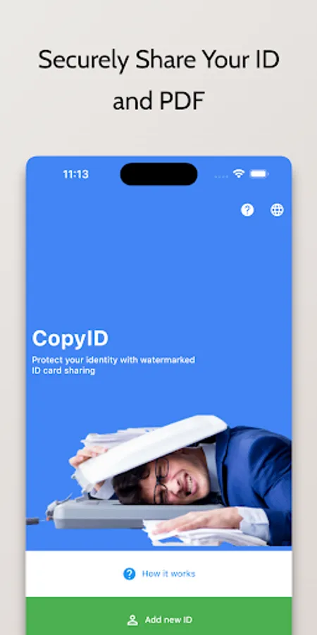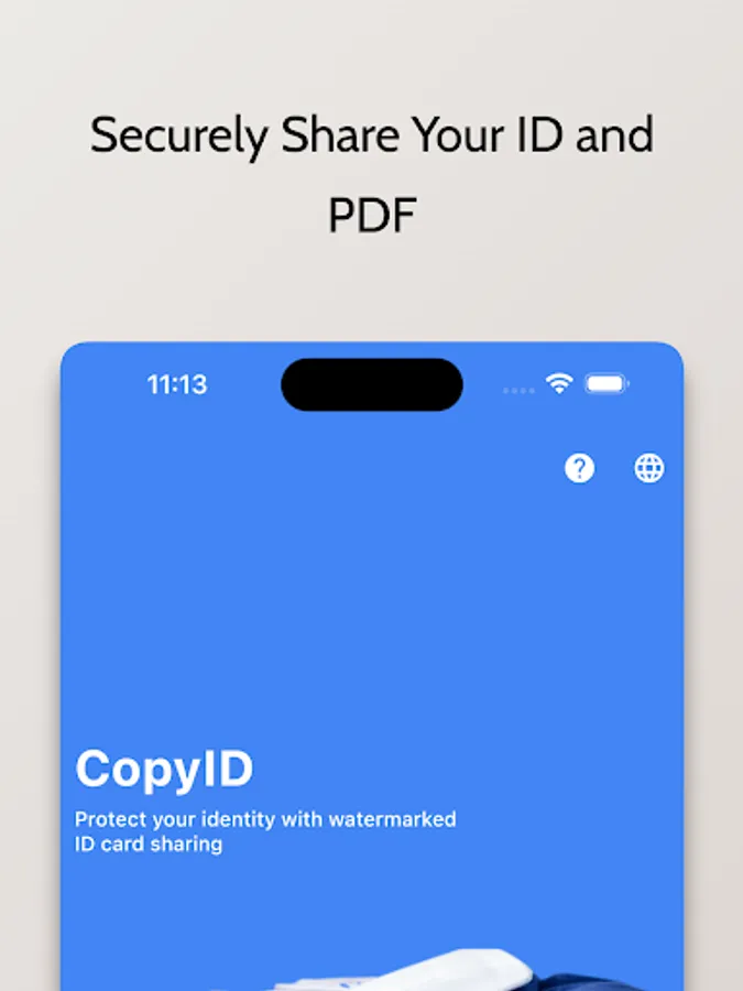 Welcome to CopyID, the app that helps you protect and share your ID cards with watermarks. Safeguard your personal information with ease using the following instructions: