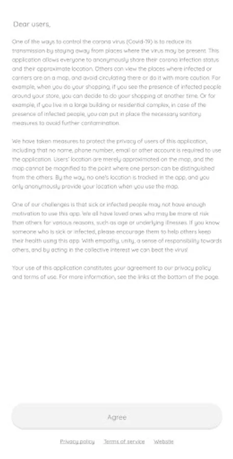 We have taken measures to protect the privacy of users of this application, including that no name, phone number, email or other account is required to use the application. Users' location are merely approximated on the map, and the map cannot be magnified to the point where one person can be distinguished from the others. By the way, no one's location is tracked in the app, and you only anonymously provide your location when you use the map.
