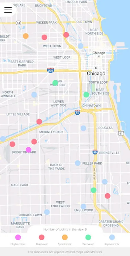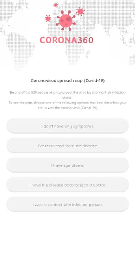 One of the ways to control the corona virus (Covid-19) is to reduce its transmission by staying away from places where the virus may be present. This application allows everyone to anonymously share their corona infection status and their approximate location. Others can view the places where infected or carriers are on a map, and avoid circulating there or do it with more caution. For example, when you do your shopping, if you see the presence of infected people around your store, you can decide to do your shopping at another time. Or for example, if you live in a large building or residential complex, in case of the presence of infected people, you can put in place the necessary sanitary measures to avoid further contamination.
