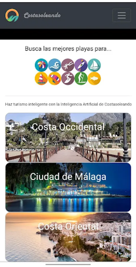 Free application of the Chair of Littoral Sciences of the University of Malaga (UMA) in collaboration with the EDANYA group to do Intelligent Tourism on the Costa del Sol with the help of Artificial Intelligence (AI) algorithms.