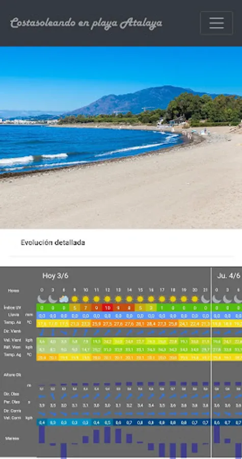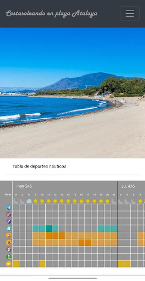 The Artificial Intelligence of Costasoleando analyzes the detailed evolution of the sea conditions and offers you information on the types of water sports that can be performed every hour on each beach on the Costa del Sol during the next 5 days.