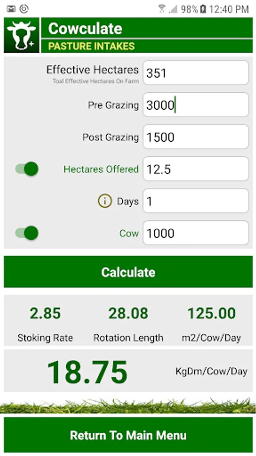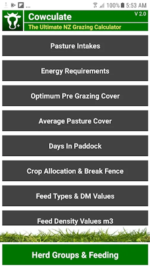 Welcome to the Ultimate New Zealand Grazing Calculator aptly named, Cowculate. This app was developed by me, a typical New Zealand dairy farmer who's good at milking cows, ramming posts and fixing broken waterlines, however like most good farmers, I ain't so good with numbers and calculations. I wanted an app where I could quickly and easily calculate feeding rates, break sizes, dry matter calculations, per cow calculations and the like.