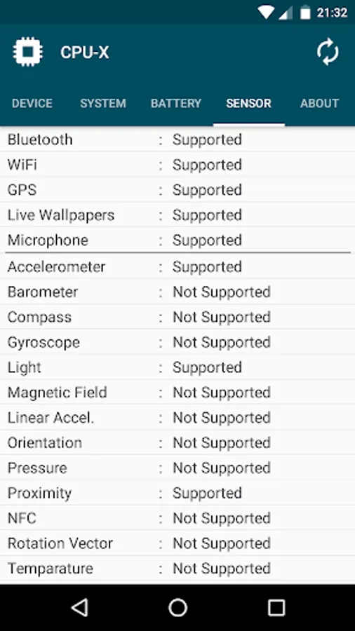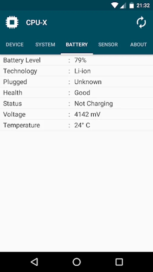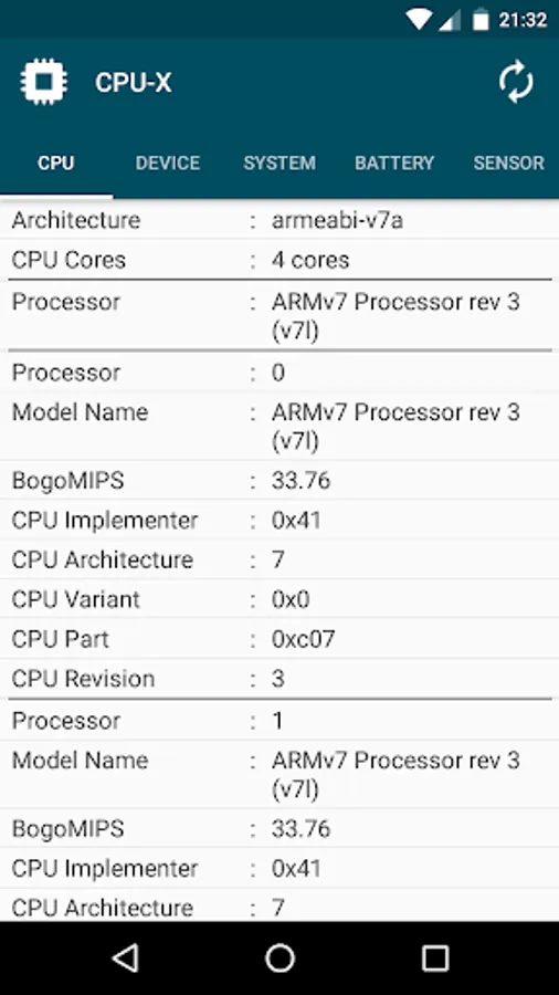 CPU-X is a premium utilities app template in android. this app show information about your phone, like CPU, system, device, batery, and sensor.