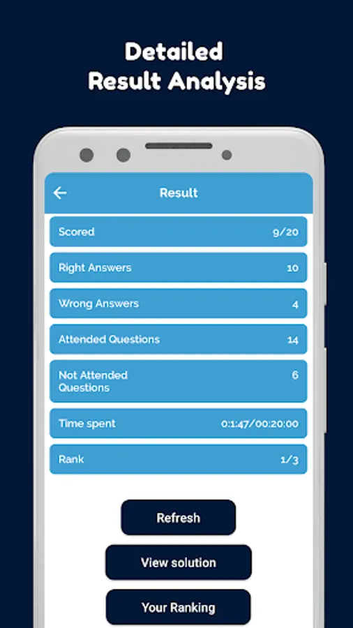 You can check the detailed result analysis and leader board at the end of completing the quiz.
