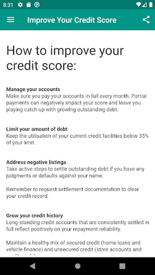 Credit Score Checker Kenya makes it hassle-free to check your CRB status and view your personal credit score and credit report. It is now easier than ever before to find out what you credit score is in Kenya. The app allows you to enter your details, and your personal credit report is produced for you. In order to receive the full benefits and obtain personalised information we recommend you register with Credit Score Checker Kenya. We will also show you ways to improve your credit score. We will also introduce you to methods on how to save money. This app is really a fantastic financial tool in your pocket. We value our customers in Kenya and we aim to deliver a service and product that really helps you. We welcome your feedback so we can improve this credit score app.