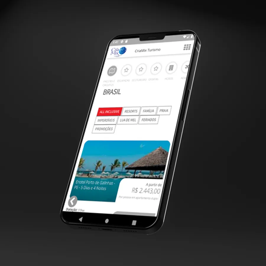 The CriaMix Turismo application is completely free and with it you can have access to our packages, hotels, airline tickets, car rental and much more.