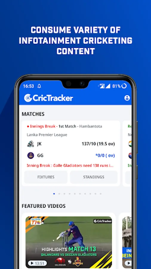 "CricTracker brings cricket lovers from around the world under one roof. We boast of an overwhelming reader base of young fans who like to follow all the updates of the game. We have over 20 active categories all over the app to keep our audience updated with all the latest happenings in the game of cricket.