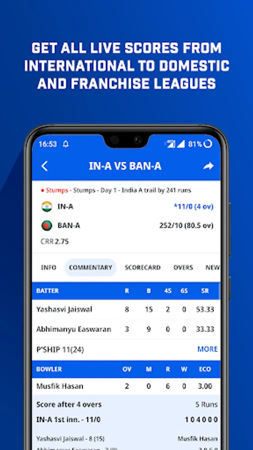🌐Live scores of all international, domestic and franchise tournaments across the globe