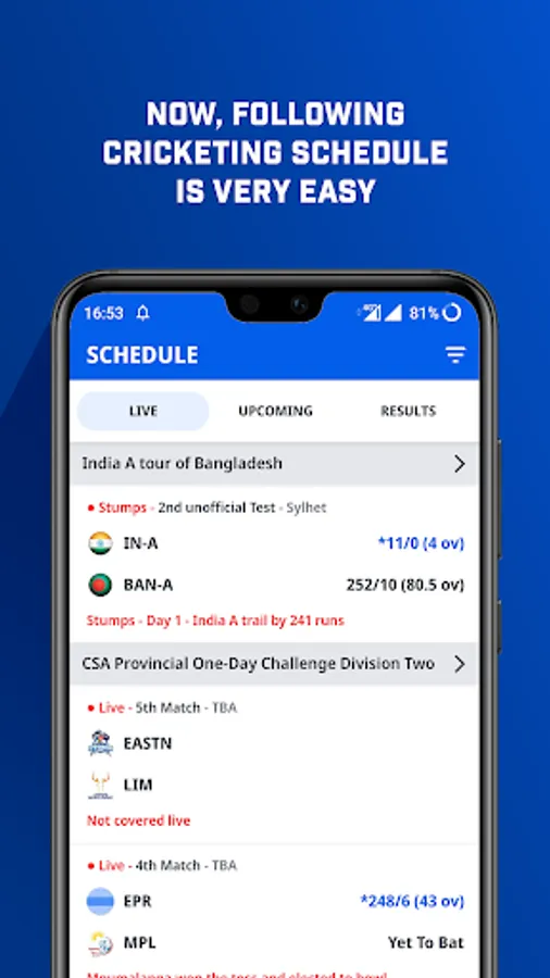 👌🏽Follow ongoing series/tournaments and consume latest infotainment content