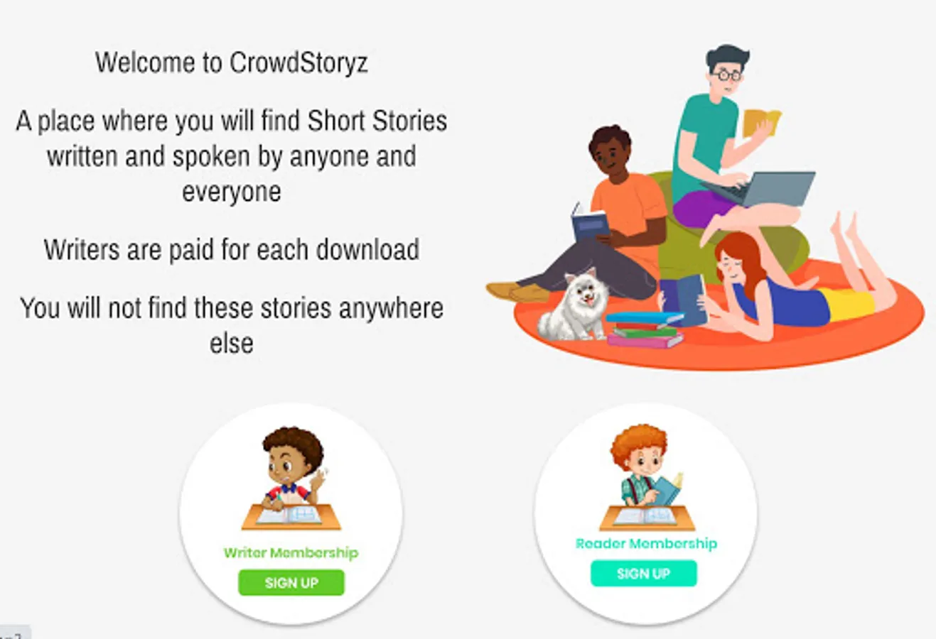 A place where you will find short stories written and/or spoken by anyone and everyone. Here, Writers are be paid by Readers for the privilege to download each story. Download our app and begin sharing stories today.