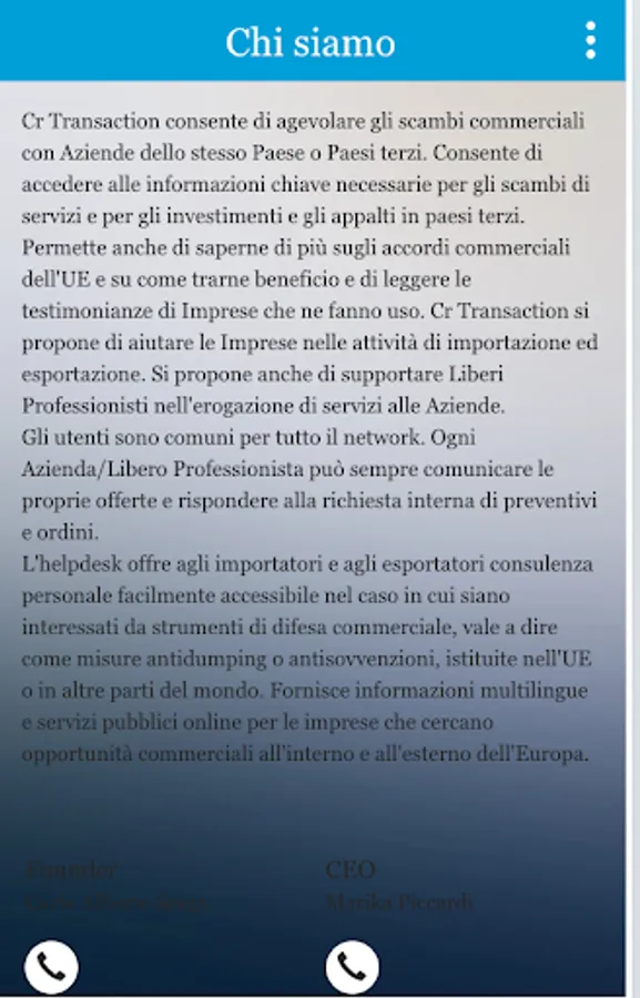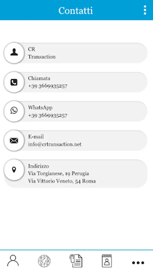 Cr Transaction è l'app ideale per connettersi con altre Aziende incrementando gli scambi commerciali ed incrementare la propria rete. Inoltre consente ai Liberi Professionisti di pubblicizzarsi e offrire servizi direttamente agli utenti.