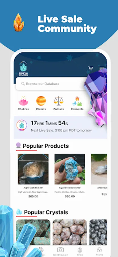 Dive into the mesmerizing world of rocks and crystals with our all-in-one app. Whether you want to identify, learn, shop, or subscribe – we have you covered. Download today and embark on your enlightening rock and crystal adventure!