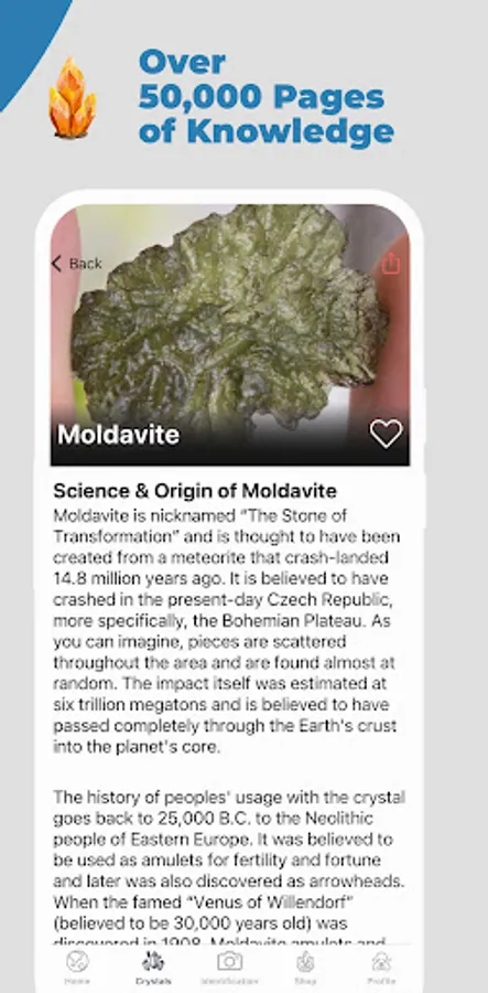 Upload a photo of any rock, stone, or crystal, and our app instantly identifies it. With a massive database covering over 6,000 rocks, minerals, and gemstones, you're set to become a rock and crystal expert in no time.