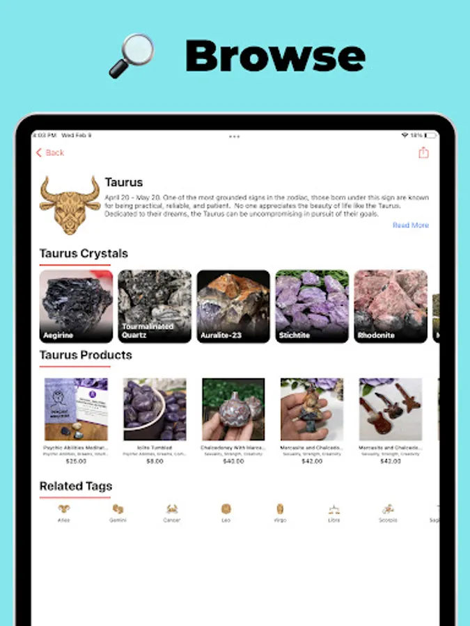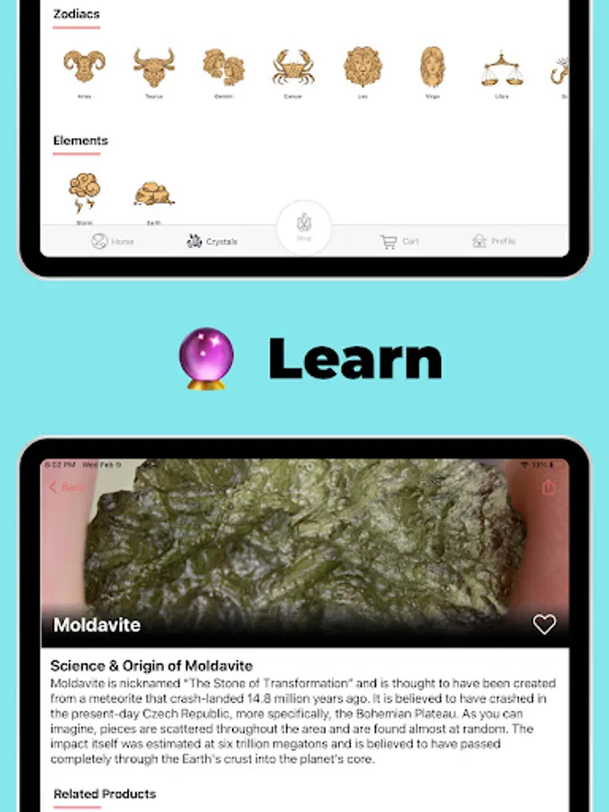 Our app offers a seamless shopping experience, boasting an extensive range of authentic, ethically sourced rocks and crystals. Plus, enjoy free shipping on every gemstone purchase.