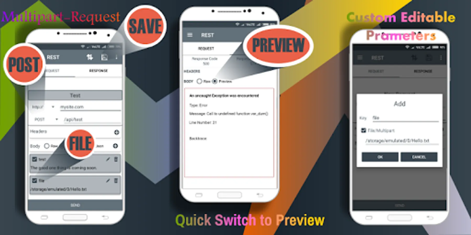Are you a web developer or android application developer? then you are most probably gonna use REST api ,this app provides facility to test rest api, able to place in your requirement for rest api client for testing apis from android device for free. The app provides you interface to test REST apis, as well as it can be used as client for sending and testing GCM push notification. With the app you can send requests in restful manner, share the response to other developer. Save request collection and share the collection with other developer.