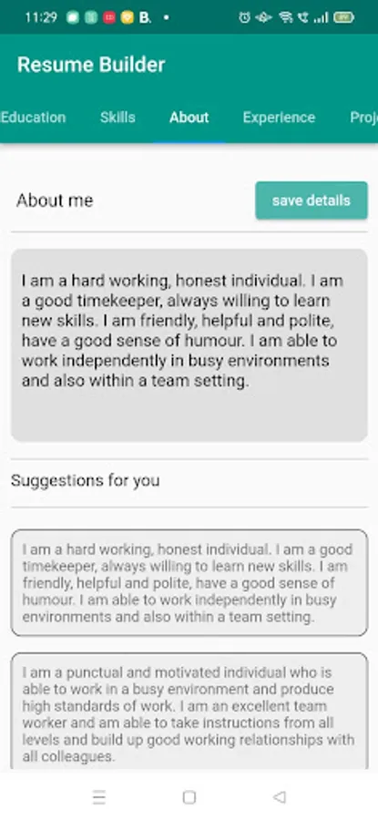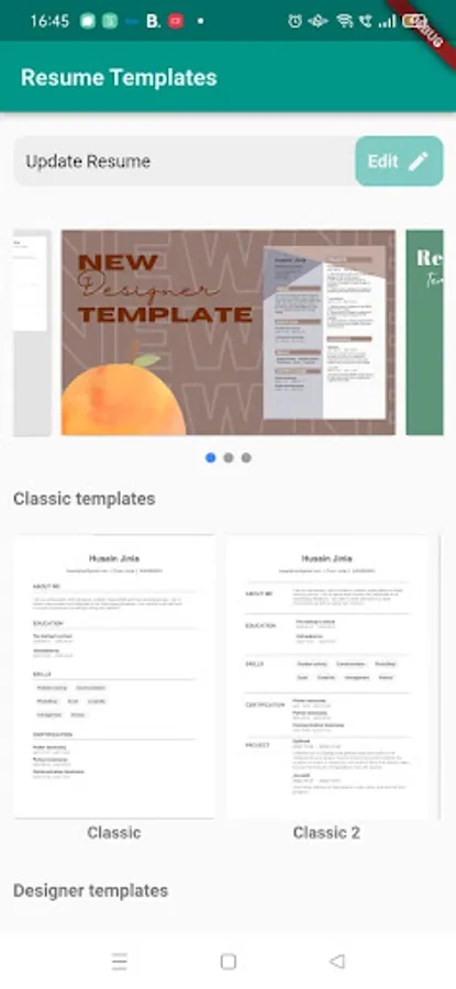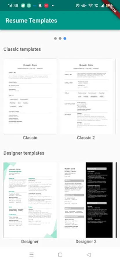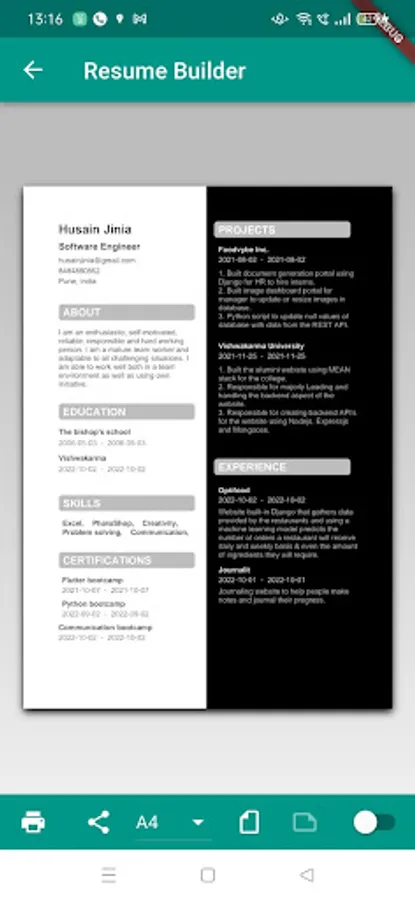This app allows you to create, edit, preview, and save your resume in PDF format. You can also share your resume.