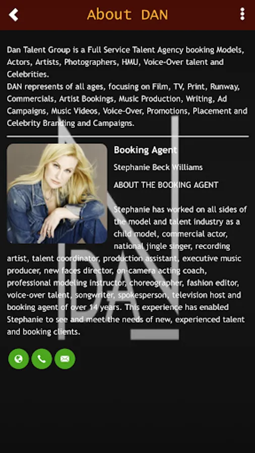 DAN Talent Group is a talent casting and submission service for talent represented by DAN Talent Agency. Listed talent can create their profile, view and submit to castings and contact the agency.
