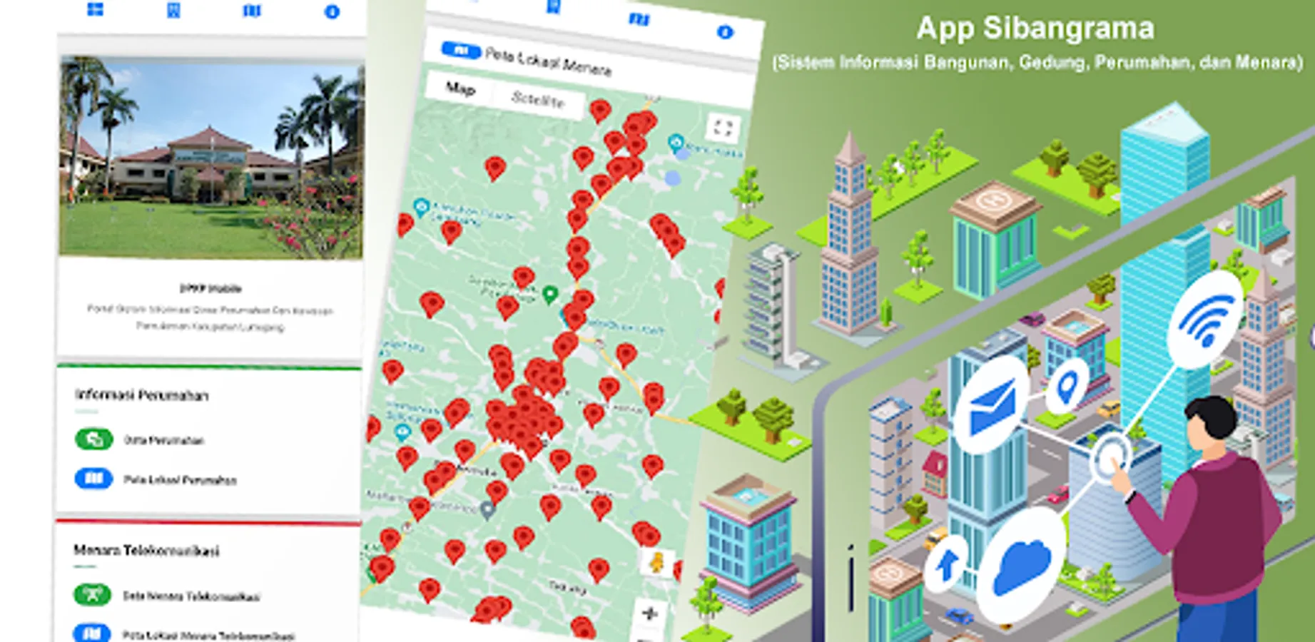 siBANGRAMA (Sistem Informasi Bangunan Gedung, Perumahan, dan Menara) merupakan aplikasi yang menyajikan perhitungan retribusi Persetujuan Bangunan Gedung (PBG),Data Perizinan rencana tapak perumahan (Siteplan) dan Data Menara Telekomunikasi di Kabupaten Lumajang