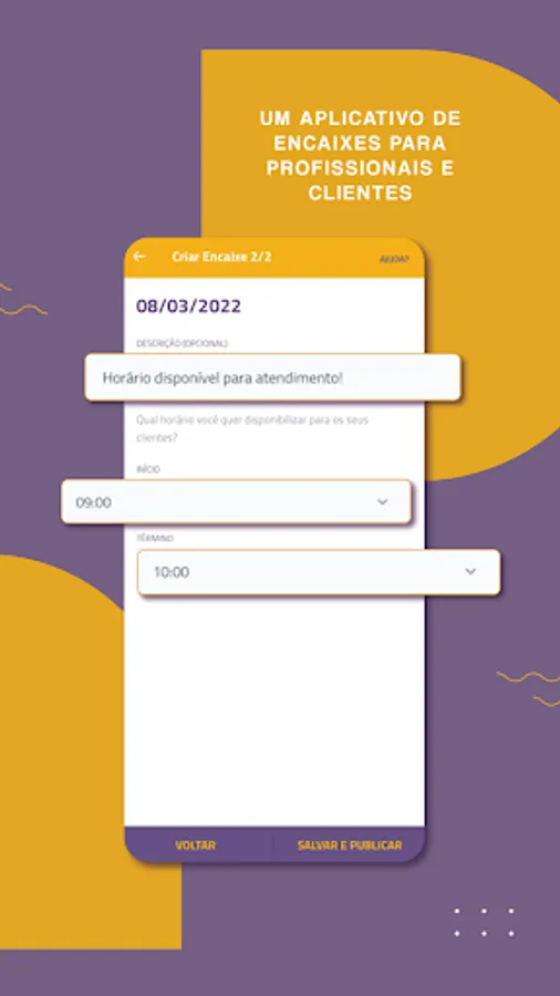 Quickly post available times in your calendar, resolving unwanted cancellation issues effortlessly. Create slots and publicize available spaces in your schedule in a simple and secure way for your network of clients. Receive requests and confirm all within the same app.
