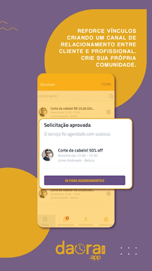 Through the Daora App, you can also be located by other customers, increasing your business network. Your struggle to fill the empty spaces in your schedule is over.