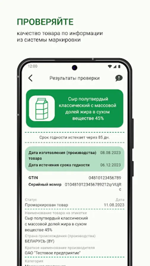 Consumers of products on the territory of the Republic of Belarus will be able to verify the authenticity of the goods in the Electronic SIGN application and find out information: about the manufacturer, composition and shelf life, date of issue