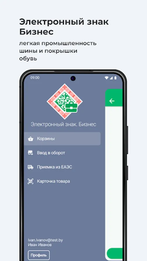 Mobile application “Electronic sign. Business" was developed for business entities of the Republic of Belarus registered as participants in the state information system for marking goods with unified control marks or identification means "Electronic Sign"