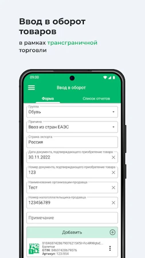 · Possibility to transmit information about the introduction into circulation of goods imported from the EAEU member countries, where mandatory labeling of goods has been introduced;