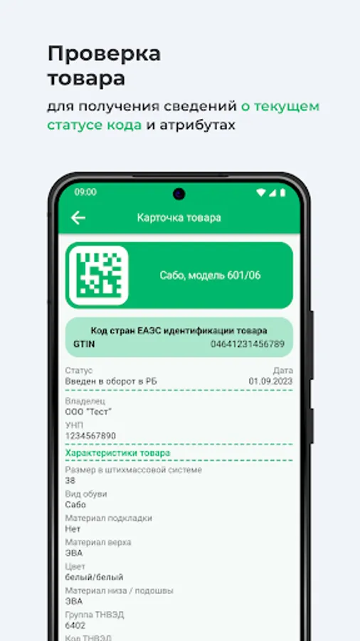 · View the main attributes of the product and the current status of the marking code.