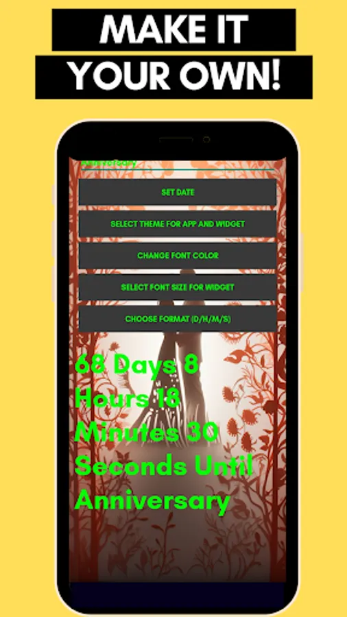 NOTE: Please be aware that continuous use of this app may consume battery power quickly due to the countdown feature. For longer battery life, consider adjusting the frequency of your countdown updates.