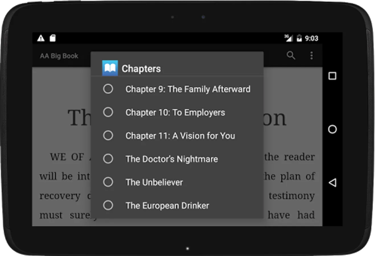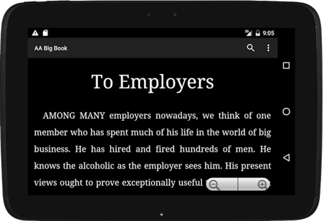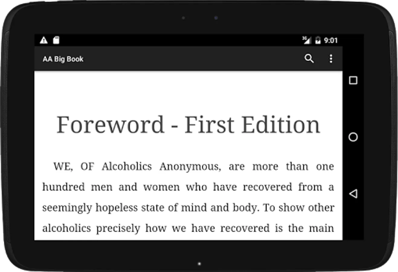 The best and easiest AA Big Book app on the Play Store! Includes all you need to read and study the Big Book on the go. Great for all members of Alcoholics Anonymous.