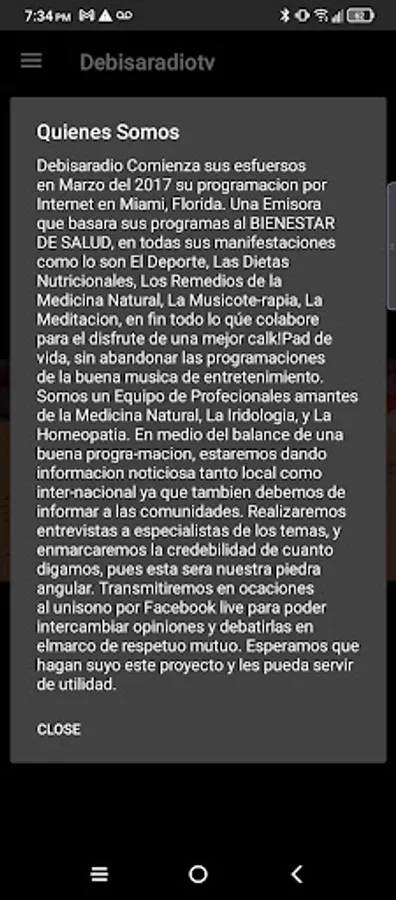 The Application was created to enjoy a TV radio station, which nourishes us with the necessary knowledge to maintain an optimal standard of living, that is why its name DEBiSa TV (Sports, Well-being and Health) I just hope you know how to enjoy its programming where we will also include a good musical repertoire,