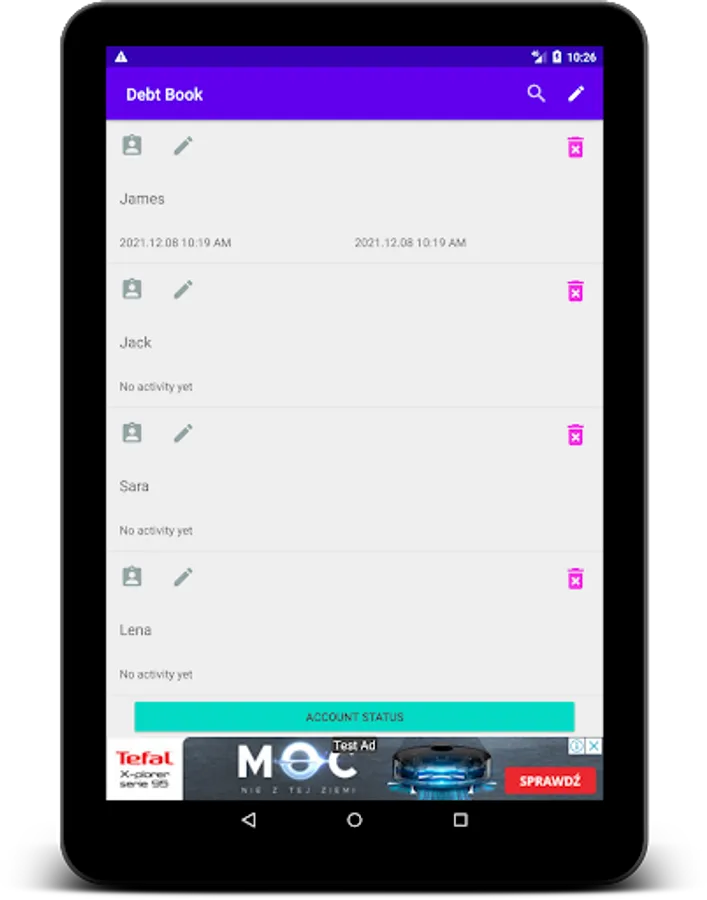 Debt Book App is debt manager & tracker to manage & track personal debts, with recording all withdrawal and deposit with ability to send debts as PDF file, easy to create backup and restore data.