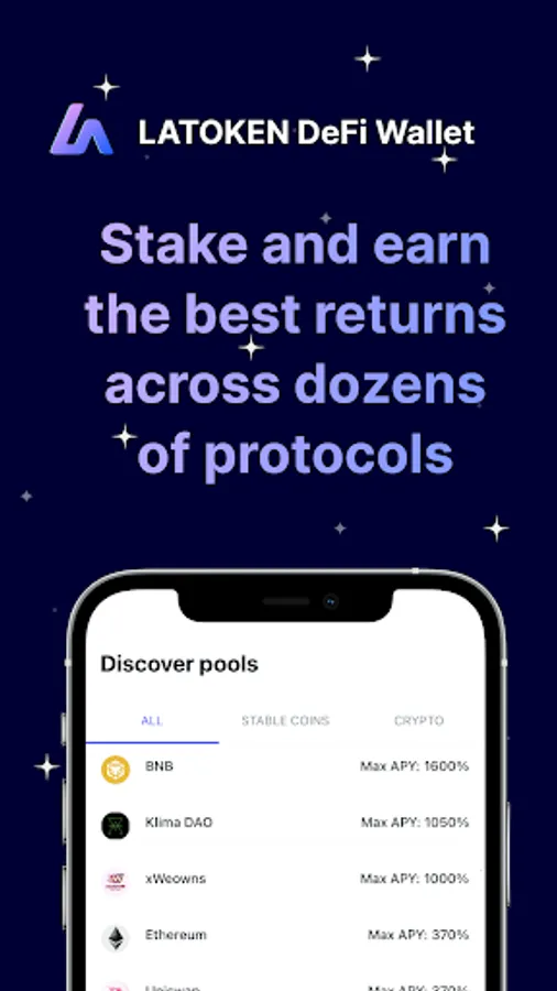 Start using LATOKEN DeFi Wallet right now! Stake and earn the best returns across dozens of protocols. All of DeFi at your fingertip, including: