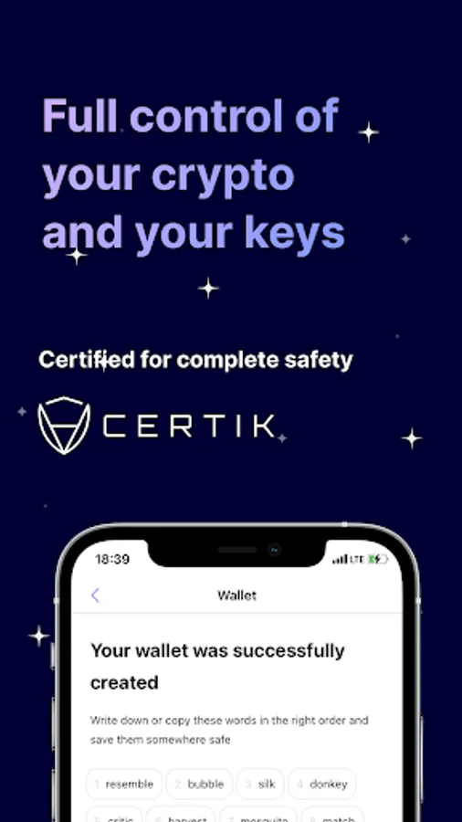 Security is the top priority. Your private keys are stored securely on your device, you are the only one who can access them, and we have been audited by CertiK to prove our security.