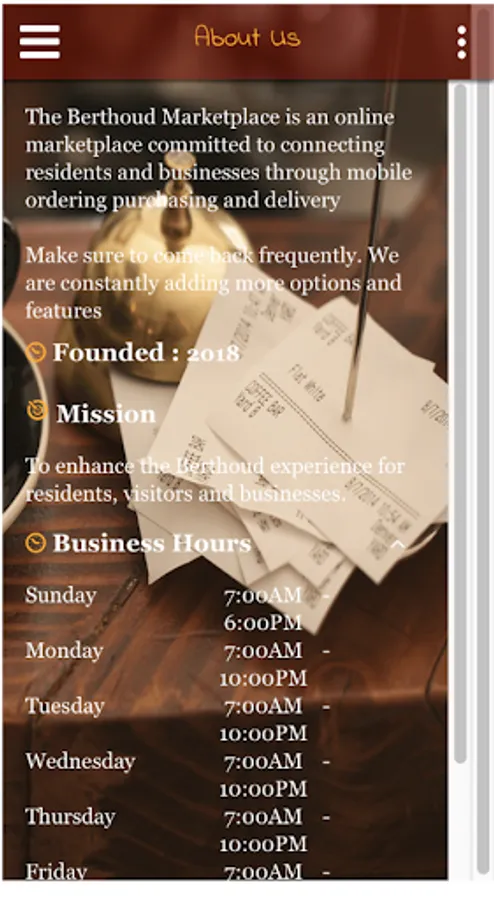 The Berthoud Marketplace is an application based mobile tool which connects residents and visitors to local businesses through online ordering and delivery. The application was inspired by a desire to keep Berthouds unique social and economic ecosystem thriving both in-person and online.