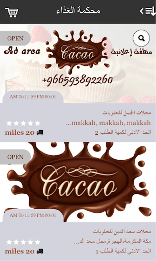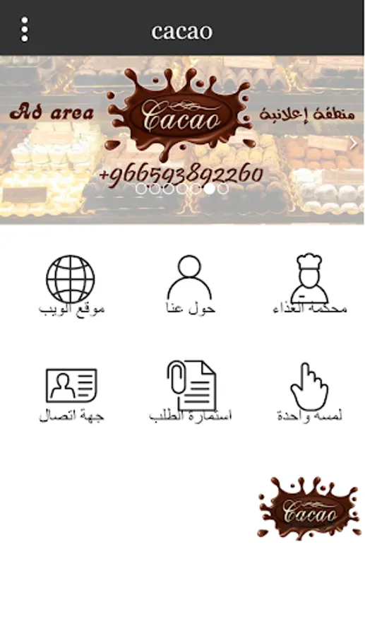 تطبيق كاكاو ، كاكاو للحلويات ، تطبيق محلات الحلويات