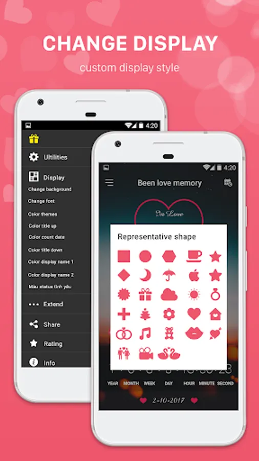★ You can easily place a representative picture for 2 people in the app or change the cute, funny avatar frames such as: heart, hexagon, diamond, apple, cloud etc. You can also edit the name / nickname for yourself and your lover easily.